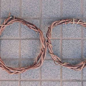 おはようございます😊☀️ 昨日は実家の梅の木の剪定に(主人が) 3m以上の大木で結構バッサリ伐りました✂️ 蔓も巻き付いていて、いい感じにリースに出来そうなのでもらってきました🙆 太いのもあったけど、何も考えない主人はブツブツ短く切って使い物にならない~😂 Φ20㎝くらいのをふたつ さて、何を飾ろうか🤔