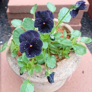 おはようございます😊☔ 光加減で黒く見えるビオラさん💕