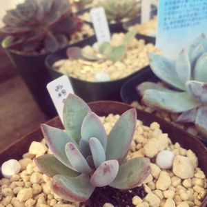 こんにちは😃 こちらはミニミニ🎵 キュービックフロストは昨年冬にsale品を狩ってきて、チョンパしたところから出てきた赤ちゃんを独り立ちさせたけど、 夏の暑さで小さくなってしまった子😭 千代田の松もsale品でした💦 頑張れ頑張れ〜〜🌵🌵🌵