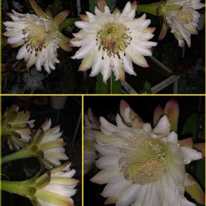 12時に帰宅して物干し場ガーデンに見に行きました。 四つ咲いていました❣️ 大雨で濡れながら撮りました! 鉢を移動したらサボテン🌵が倒れて来て 顔で受け止めてしまいました。😣 真っ暗、大雨!散々でした😢