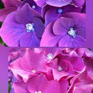 可愛い~💓 💠アジサイ(紫陽花)💠 大輪の紫色の紫陽花 花びら(萼)の中に小さな花がもうひとつ🌼 同じ紫陽花💠 上が昨日🎵下が昨年😅 🏷️おしゃれな土曜日♪ 🏷️美しく青きドヨウ 🏷️青い紫陽花マニア