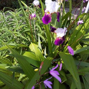 昨日道端の花壇に… ジャーマンアイリスさん…💜💮🌱キレイだったわ…側には…シランの花も…💜💓💜🌱… 青い花とその葉を写そう!2022…🏷 青い春の花マニア🏷 青いあやめ科マニア🏷