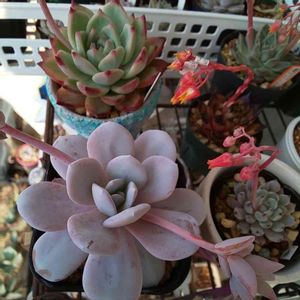 【エケベリア属 ラウリンゼ】 Echeveria 'Laulindsa' 別名 ラウィーリンゼ ラウイ×リンゼアナ(コロラータの一種) tetecoさん主催の毎月15・16日は 「🏷ド真ん中の日」に 参加させていただきますね ✂️した花はサーモンピンク、 タグ落ちですが恐らく【ラウリンゼ】 ラウイ特有のワックスで覆われた グレイッシュブルーの葉🌱 成長すると縁に赤みがさし、 大好きなエケベリアのひとつ 植え替えする機会がなくて、 3ヶ月断水&放置しても尚この姿✨ 葉焼けさえ気を付ければ 夏場も安心な強健種です💪 「カリフォルニア州サリナスのRobert Grim (ロバート・グリム)によって作られた」 〜中略〜 「エケベリアの【'Laulindsay' ローリンゼイ】、または単に【'Laulind' ローリンド】と記載されることもある」 ☆Source☆ 【San Marcos GROWERS】 https://www.smgrowers.com/products/plants/plantdisplay.asp?plant_id=4194
