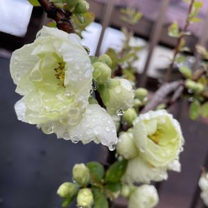 おじにもらった 木瓜の花 雨に濡れて ものすごく 綺麗でした♡