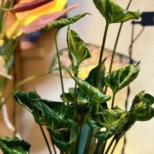 モニター中のシンゴニウム・シュリンクハート 縮れた葉っぱが特徴です。 三ツ星品質様の投稿を見て、みどりのまとめだけではなくタイムラインにも投稿しなくては!と思いました。 順調に育っています♡ シンゴニウム・ホワイトバタフライと一緒に撮影してみました。 ホワイトバタフライはいただきもののスマートプランターivyを使って育てています。はじめから中華系は信用してなかったので想定内ですが、数ヶ月で水分量が減ったときのアプリ通知もこなくなりました笑 ふつうに自分の感覚で育てればいいので、困ってはいないのですが… ただの表情がくるくる変わるだけのプランターになりました笑