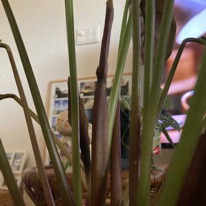 こんにちは。 今日はマイナスではないので雪は降らず、日中は4℃ほどで気温上がらず、肌寒いです😨→夜は雪🌨️ 夜から朝方雪マークです❄️ 薄暗くてすみません。 ①カラテア ファシアータさん。 土から出てきたのではなく、茎から分かれた新芽ちゃんです🌱 ②お馴染み トリオスターさん。 新たな新芽ちゃんです🌱 寒いけど頑張っています🌿