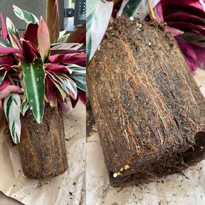 ストロマンテ・トリオスターさん、この頃葉っぱの横の方から枯れてきて調子悪いので植え替えしました👍 水が好きなんだと思うけど、やっぱり腐りやすくて鉢の外側だけか元気な根っこが覆ってて中の方はドロドロ。 だから今度は腐葉土やめて、流行りの粒状培養土にして水やりを朝晩にしてみようか🧐