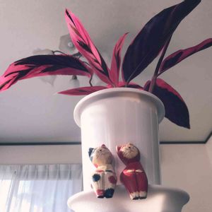 ストロマンテの根が鉢穴から飛び出し始めていたので株分け🌿 根がギチギチに絡み合っていて抜けないし分けられないしで30分ほど格闘してやっと完了😅 結構ブチブチ根が切れてしまったので今後が心配です💦 あと鉢が気に入らない…鉢カバー買おう… ついでに100円で買ってきたクロトンも植え替えました!