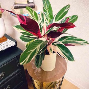 2021.3.14 𖤣𖥧𖥣。𖥧 𖧧𖤣𖥧𖥣。𖥧 𖧧 あ、今日ってホワイトデーなんですね(*ˊᵕˋ* ) 我が家は平常運転です(笑) 最近我が家に来たニューフェースたちが幾つかあるので少しずつupしていきますね♡...*゜ この子は先週かな?お迎えしました。 カラテア ストロマンテ サングイネア トリオスター🌱𓂃 𓈒𓏸 正直状態はあまり良くなかったのですかが、お値段に引かれたのと何とか私が頑張って再生してあげたくてお迎え。 帰宅後、直ぐにメネデール水に付けてあげたら元気になったので傷んで枯れた葉先をカットしてあげました😊 もう少ししたら植え替えてあげたいな。 ✎*。 購入日:2021.3.6