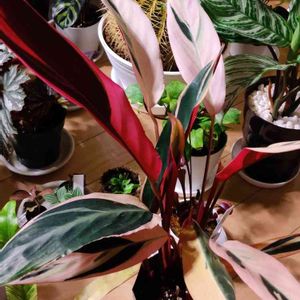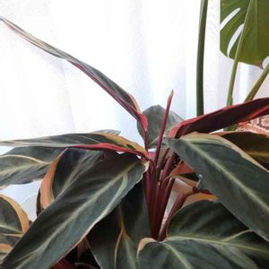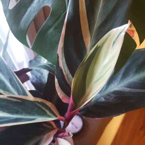 ストロマンテ・トリオスター 置き場所を変えたら目に入る入る笑 この葉の裏の赤?ピンクの鮮やかさ💓 今まで寝室に置いてたのでそれほど気にならなかったのに…