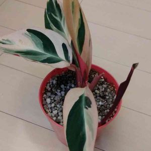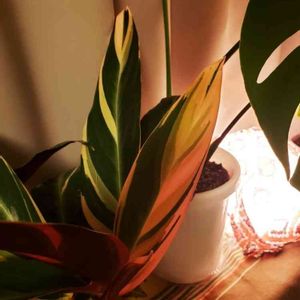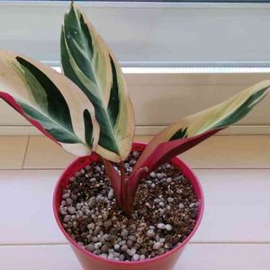 こんばんは_(›´ω`‹ 」∠)_ 綺麗なコントラストの葉色が魅力的な Stromanthe sanguinea 'Triostar' が手に入りましたので植えてみました。残念ながらあまり状態は良くありませんが、なあに!大きく立派に育ててみせますわい!( ˘꒳˘) ☔ 23℃ 20℃ 74% 北4m