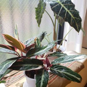 カラーリーフが好きです😁 南の窓辺はカラフルな植物に占領されています 笑 寒さに弱いクロトンを先日取り込んだので、さらにカラフルな空間になりました😆 秋なのに、窓辺は常夏🌴 はぁ〰️癒される~😌