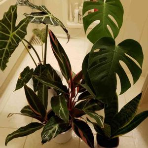 昨夜は植物たちとバスタイム🍀 土に水がかからないように蒸し蒸しのお風呂場で葉っぱに潤いを😊