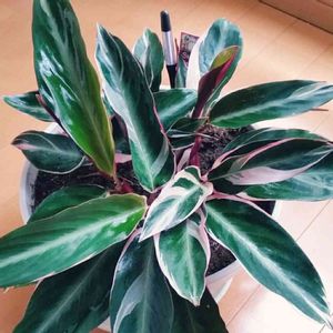 5月3日に昨日投稿のクリプタンサスレッドと一緒に久◯植木から連れて帰って来たストロマンテ・トリオスター。 赤,クリーム,緑色の見た目が爽やかで、以前から店に行く度にすごく気になっていた植物でした⤴︎⤴︎ 今回、見切り品コーナーに1鉢だけあったので思わずっ(//∇//)✨ 良い鉢が見つかるまでとりあえず3号のプラ鉢に植え替えました‼️ 2.5号のプラ鉢に入って300円なり ( ̄∇ ̄)✨ クリプタンサス¥100- トリオスター ¥300- 計¥400-(笑) 連休に見に行けて当たりでした(*^▽^*)♬