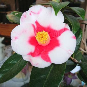 椿 月ノ輪が咲きました☺️ 紅白の出方が二つとない優雅な椿です😌💓