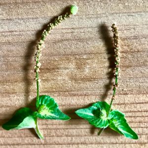 エノキグサの花 アレ!!花の形がおかしいですね 👀 気が付きましたか? 上部にある穂状のものが雄花、下部にある 編笠状の総苞葉の中にある、丸い形のものが雌花です。 雄花の花粉は下に落ちて受粉します。 したがって右が正常⭕️ 左は雄花の上にも雌花があります。 これってニューハーフエノキグサ? あちこち観察すると、かなりの確率で繁茂 していますね! この先どうなるですかね〜😰 雄花なくなるかも?