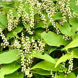 ヤマノイモ(雄花) 野生化している中国原産のナガイモと 葉がよく似ているのでヤマノイモと 間違えるが(自分だけかなぁ?)😅 ナガイモは茎や葉柄が紫色ですね! 8月に撮影