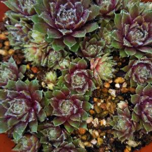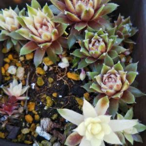 センペルビブム属 バニラシフォン 子株がたくさん誕生しています💓 上の株は集まっちゃってトホホー😅😂 下の株はキレイにぐるっと並んでたくさんいます👍ほんとに可愛い子達です💋