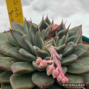 雪の上で撮影✨❄️ 爪がツンツン💕 花芽もにょきーん😏 撮影のあとVIP席に戻しましたw あまかえるんさんからの頂きエケさん。 どうですかね? キレイに育ってると思いますの... エケベリアは2年生なのでうまく育てられてるのか謎.....💧