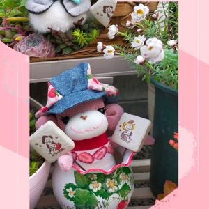 スヌーピー鉢に プラパンでスヌーピー ピック作ってみた(^ ^) 手に持ってるのは多肉 …のつもり。