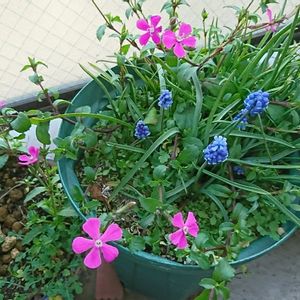 軒先貸したら乗っ取られた ムスカリをいっぱい植えたはずが、ツルコザクラの芽が出て来てそのままにしてたら養分取られ 貧弱なムスカリ に…… なんてこった😭
