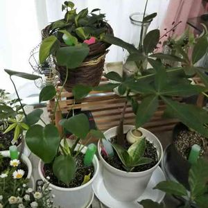 おはようございます(*^^*) 今日も雨☔️なので窓辺組をパシャリ📷観葉植物達❤️ 😀左横に花かんざしの寄せ植えが、ちょこっと写ってます❤️