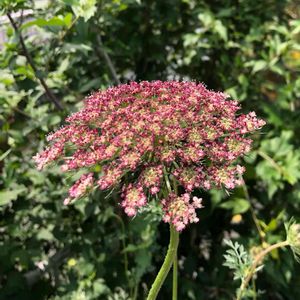 今年も零れ種からブラックレースフラワーが咲きました‼️ 草丈は2m以上です。(椅子に乗って🤳) 1番花をカットすれば下の方でも花が咲くので楽しみです🎶