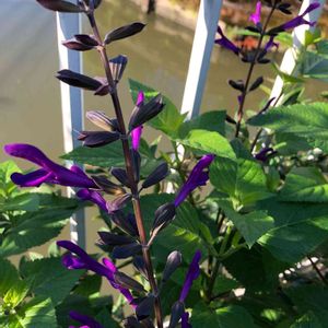 こんばんは‼️ 今朝の朝日を浴びたメドセージです🎶😃 紫が一段と濃ゆく写ってます✌️👍 メドセージの側に行くと香りが良くて大好きです😍❤️