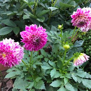 おはようございます😃 一昨日、投稿したダリアが満開になったので再投稿です。 下は去年の春、迎えた時のpic鉢植え。 夏に地植えしてからはピンクになったけど、ダリアも土壌が関係するのでしょうか⁇