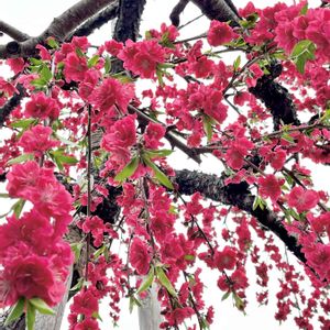 曇り空です☁️ 知人の畑に垂れ花桃が…👀目を惹きます😃どの花見ても綺麗だなぁ~🎶🎵 平穏な一日であります様に🙏💗