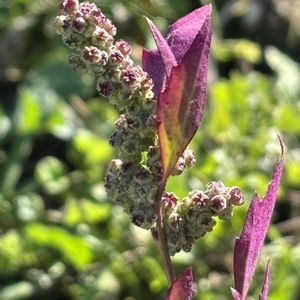 農道の用水路の側で赤紫色の雑草に目が止まり、 一度通り過ぎましたが、やっぱり気になり戻りました。 詮索の結果「アカザ」と出ましたが? 間違っていたら教えていただきたいと思います。