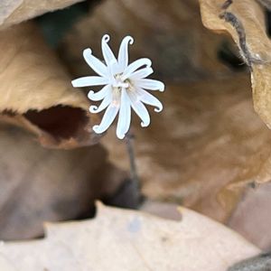里山を歩いてみれば… もうさすがに終わりかなって行ってみたら… 落葉の毛布に包まれてまだ咲いてたキッコちゃん😊 キッコウハグマ(亀甲白熊)⚫︎⚪︎⚪︎⚪︎⚪︎