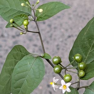 散歩道🚶♀️ ガード下に咲いています! 艶のある黒い実●が傘を開いているようについているのでアメリカ🇺🇸とつけました! どうでしょうか…?🤔 ナス科 ナス属 花期 8〜11月