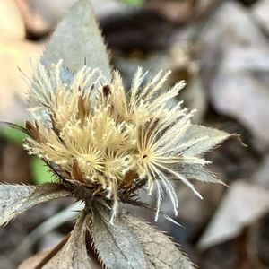 ①②③ ノハラアザミ/野原薊 キク科 アザミ属 原産地:在来種(日本固有種) ・山野草 ・多年草 ・草丈:40-100cm ・花期:8-11月 ・花径:(3)4-5cm ・頭花:すべて両性の筒状花からなる ・総苞:幅1.5-2cm、くも毛が多い ・総苞片:6-7列、曲がらず、斜上し、先が鋭い 総苞片に腺体がなく、粘らない 別名:クルマアザミ 花言葉:「心の成長」「独立」「自立」 「報復」「触れないで」 まだまだ頑張って咲いている。 この寒さなのに アサギマダラが居た 相変わらず 優雅に ふわふわ 飛翔 旅をせず この地で過ごすのかな ④⑤ コケ collage上の苔に 目 鼻 口を書いたら……