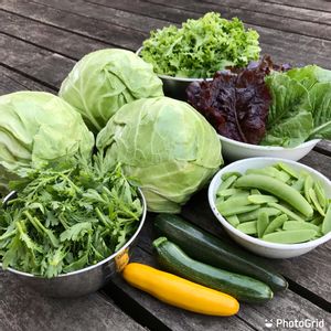 週末日曜☀️朝の畑の恵み😊。 頂き物の消費を待ってたキャベツだが、いよいよ待ちきれなくなってきた💦。 とりあえずお昼は、お好み焼きに決定⁉️。