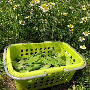 2029.5.2 今日の収穫。 絹さやエンドウ212個。 そろそろ終わりです。