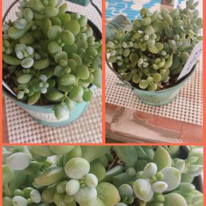 今週初めは雨降りで☔寒かったけど 今日は蒸し暑い(;゚Д゚)☀️ 気温の変化についていけません(꒪д꒪II 今日は戌の日🐕5ヶ月目に入り 腹帯巻きました✨暑い😅💦 ホムセン産 ペンデンスちゃん🌱 ͛.* 1月にお迎えして、半年 お迎えした頃は、徒長っ子でした💦 ぷっくり感もなく… 私の知ってるペンデンスとは程遠い見た目😣 徒長してる部分をカット✂️して 春にお外組にしたら ぷっくり感戻ってきたぁー(ง°̀ロ°́)ง 粉もふいてる🎶 今週からの雨で、たっぷりめに お水を吸ったみたい😋 成長早いのかな⁉️ 暑さにも負けず、新芽もちらほら出てる💕 あまり手のかからない 優秀な子です(๑•̀ㅁ•́ฅ💮 そろそろ鉢が小さいな💦 秋になったら植え替えしなきゃ🤔