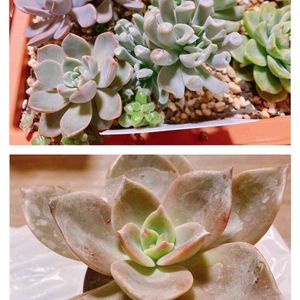 デビーさんに続く、我が家の優秀さん💖 親株チョンパ✂️してから すくすくお子さん出てきて🌱 第一軍をチョンパヽ(´▽`)/ そしたらあっという間に第二軍✨ 数えたら6つくらい出てた🤗💕 ②の子はチョンパするときに うっかり株に触れてしまい😭 葉っぱがポロポロ… やっちまった(;.Д.) 春生まれは成長が早い🌷🎶 楽しみだなぁ~♡(´˘`๑)