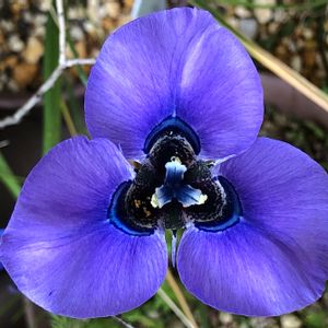 モレア(モラエア)ビローサが咲きました💙💜。 クジャクの羽の模様に似ているのでピーコックモレアと呼ばれる系統です🦚。
