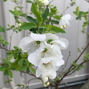 🌿利休梅🌿 毎日の雨☔️ですが、蕾をたくさん携えて健気に美しく咲いています💖 花もまん丸の蕾も、真っ白が美しいです💓💖 マイガーデン 🏷純白マニア 🏷白い恋人達 🏷ビューティフルサンデー 🏷ちっちゃいものクラブ に参加させていただきます💕