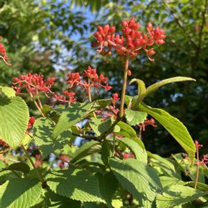 【燃える葉っぱ】 毎年 この芸樹的な葉っぱに会うのが楽しみです① もちろんお花も② キリンさんみたいに首が長くスッとしています