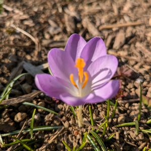 【1輪だけ】 ひょっこり顔を出したクロッカス なんて愛らしいのでしょう 思わずほっこり (*˘︶˘*).。.:*♡