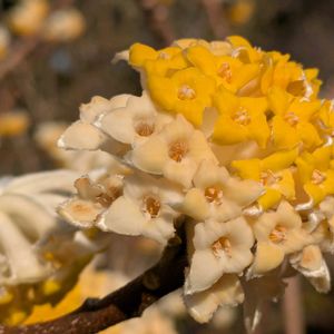 【ミツマタ】 冬芽の時にはギュッと固く閉じていたつぼみも 少しずつかわいいお花が開いてきました このみた感じのもふもふ感がたまりません