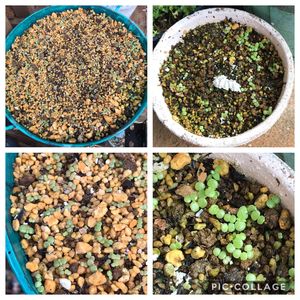 今年のカウルレアは大量に発芽しました🌱🌱🌱🌱🌱🌱🌱🌱 右の上下が去年からの鉢で、 左の上下が枯れた本体を逆さにしてザンザン押し付けて数ヶ月放置した鉢です🍂 (ちゃんと種取ろうと思ってたけど、忙しくて結局ひどいズボラ種蒔き🙄) これからの成長と可愛い青いお花が楽しみです🥰 タグからお迎えしてからの過程が見れます🏷