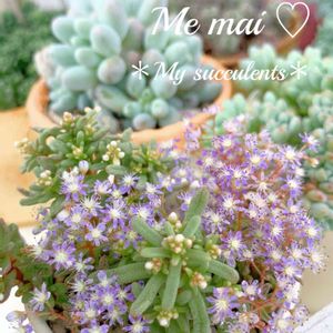 多肉の鉢のアチコチから 何だか分からないセダムが…! モヤモヤをスッキリさせたくて、 まとめて植えてみたら 青い花が咲き出した(*´艸`) 去年買ったカウルレアでした٩(>ω<*)و こぼれ種で育ってくれたらしい♡ 1年草だから、 また今年も見れるなんてラッキー✧‧˚ また来年もこぼれ種で育って欲しい( *´꒳`* )