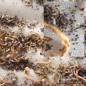 土曜日に長女が結婚したい彼を連れて来る❣️ 部屋を片付けないと、と片付け出すも、なかなか進まない😵 日頃からちゃんとやってれば、バタバタせずに済むのにね💦 カウルレアの種、どれだか分かんないから茎ごと取っておいた😅 ほんとにこの中に種があるのかな? マクロレンズで拡大してみたよ。 この黒いつぶつぶは種ですか? 茶こしでこしてみたけど🙄 肉眼では砂みたいだけど。