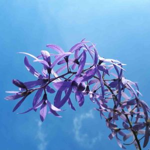 母のお庭 ムラサキツクバネカズラ 梅雨じゃない〜 めっちゃ青空