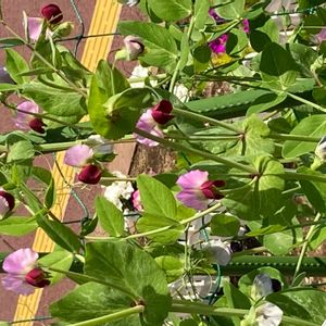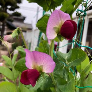 妻の実家からpicメールが来ました。 先日、塔さんが植えた「キヌサヤ」のお花が咲きました。🌺🌿😊🤗 可愛い赤とピンク色のお花です。🌞