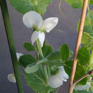 キヌサヤの花、アイボリーの優しい色で素敵❣️ このまま放っておけばエンドウになるの?