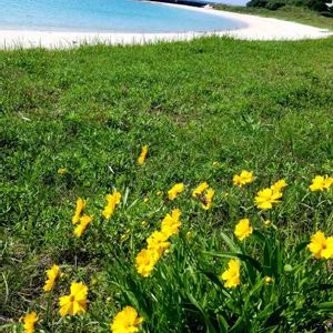 昨日は暑い☀1日でした😣 お花と白い砂浜と海💕 もう泳いでいるカップル👫がいました お邪魔しちゃいましたね😅